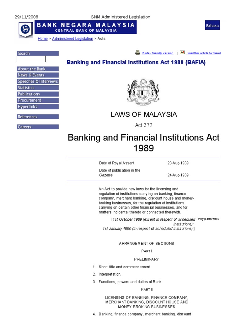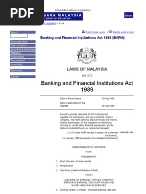 Banking And Financial Institutions Act 1989 Bafia Act 372 Malaysia Uae Laws And Islamic Finance