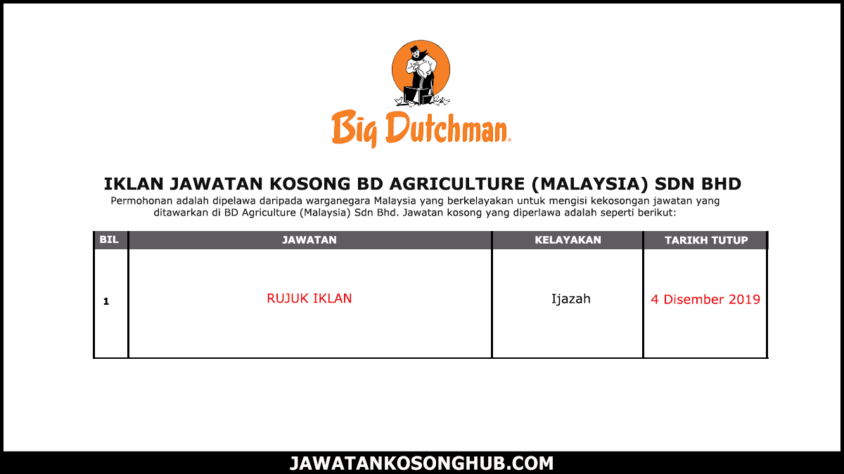Jawatan Kosong Terkini Bd Agriculture Malaysia Sdn Bhd