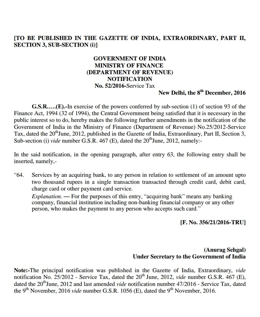 James Wilson On Twitter If This Draft Notification Waiving Service Tax For Single Trans Below 2000 Is Through Parliament Buy Fuel Below 2000 In Single Trans D Https T Co Xk6wnmry4u