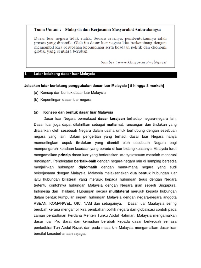 2016 Spm Sejarah Kertas 3 Maksud Dasar Luar Dasar Luar Negara Bermaksud Dasar Kerajaan Terhadap Pdf Document