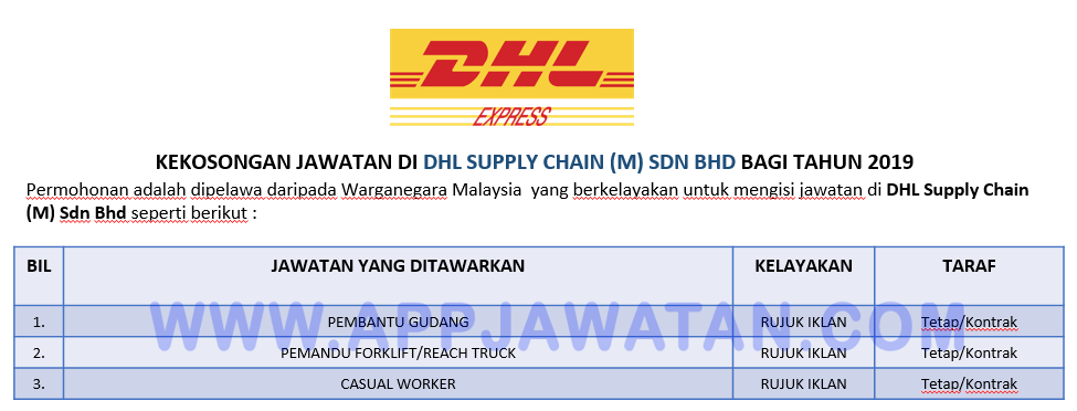 Permohonan Jawatan Kosong Dhl Supply Chain Malaysia Sdn Bhd Portal Kerja Kosong Graduan