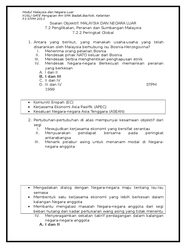 B I Dan Iii Modul Malaysia Dan Negara Luar Kusl Gate Pengajian Am Smk Badak Bachok Kelantan P3 Stpm 2013