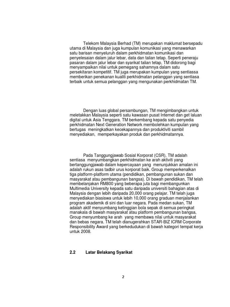 Latar Belakang Telekom Malaysia Docx Document