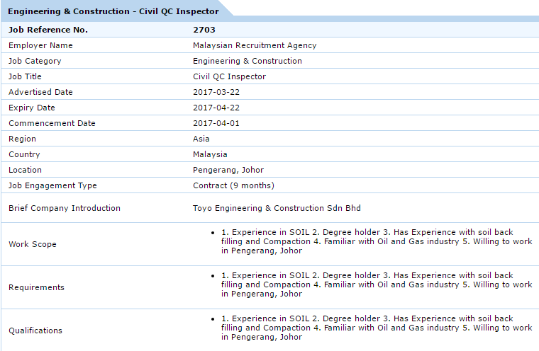 Oil Gas Vacancies Civil Qc Inspector Toyo Engineering Construction Sdn Bhd Pengerang
