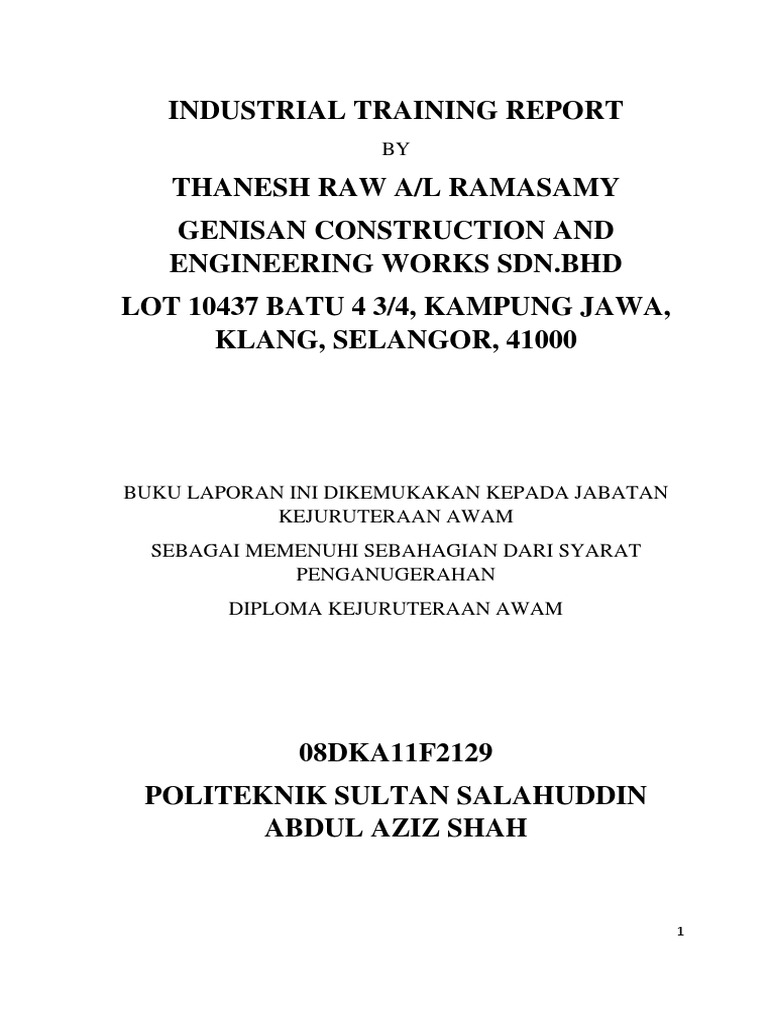 Doc Industrial Training Report Guidelines For Industrial Training Report Tareen Wineer Academia Edu